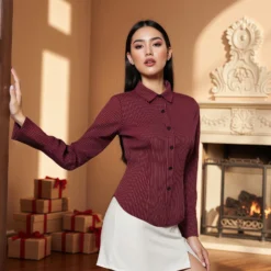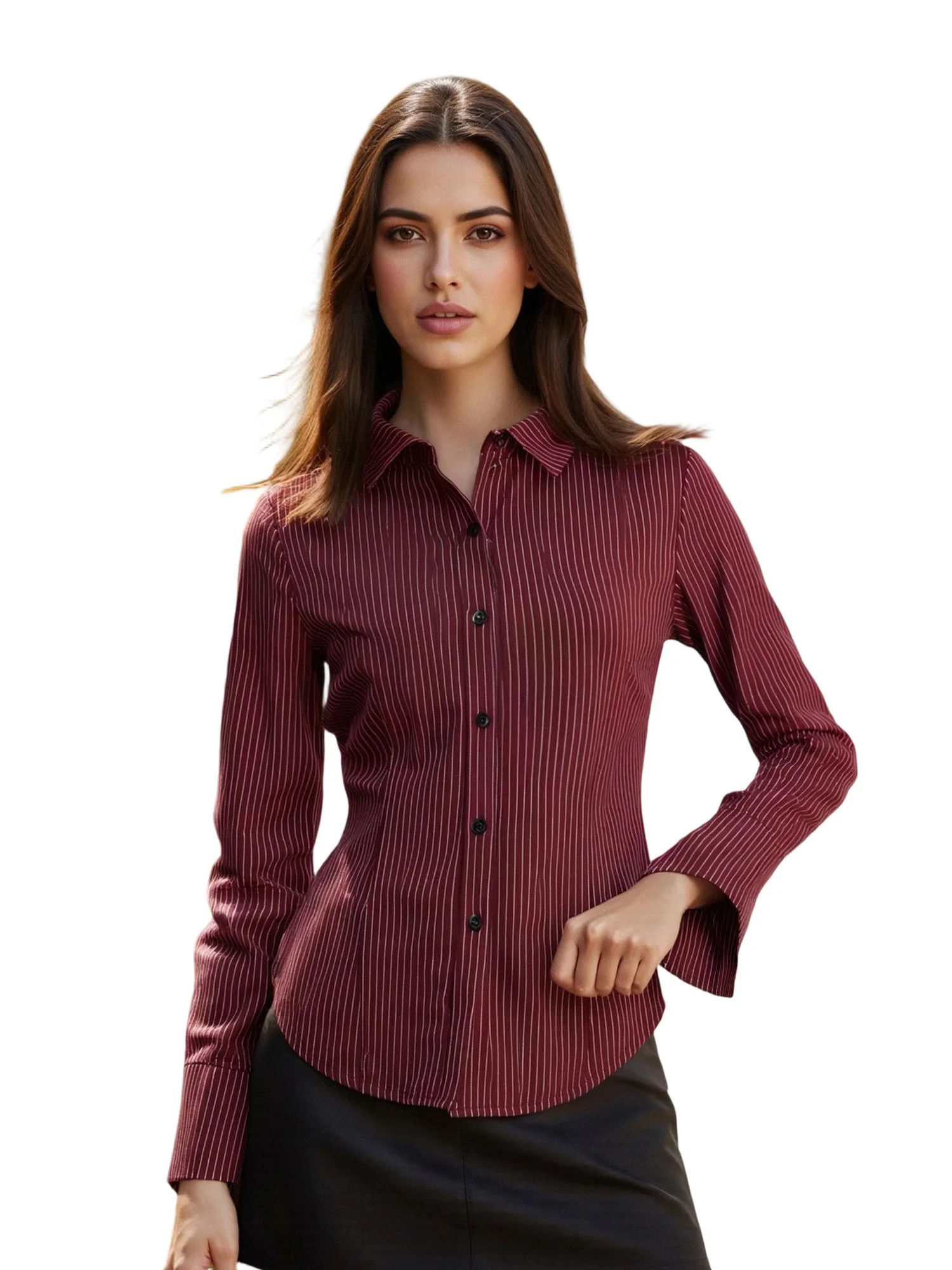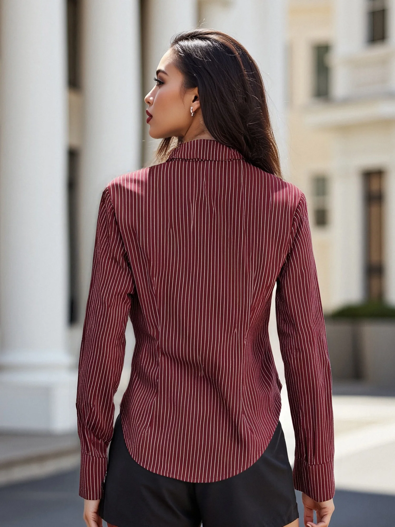 Women Striped Shirt, Long Sleeve Shirt Button-down Elegant Blouse Fall Tops Streetwear