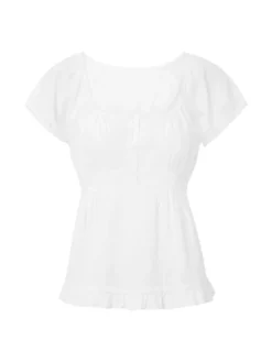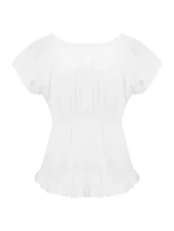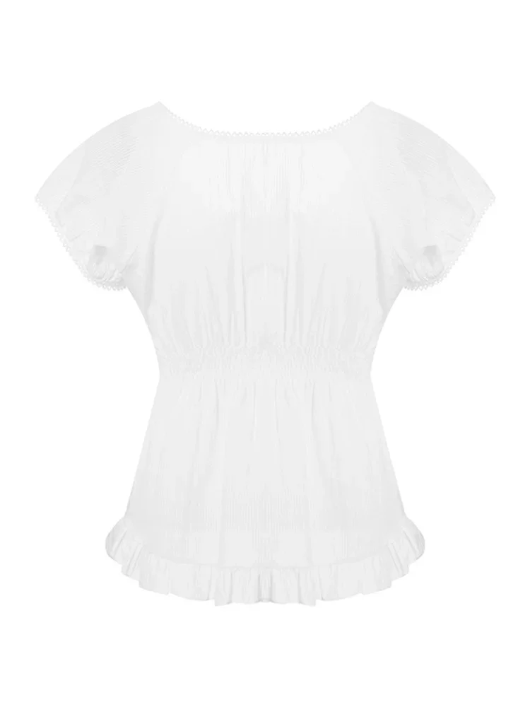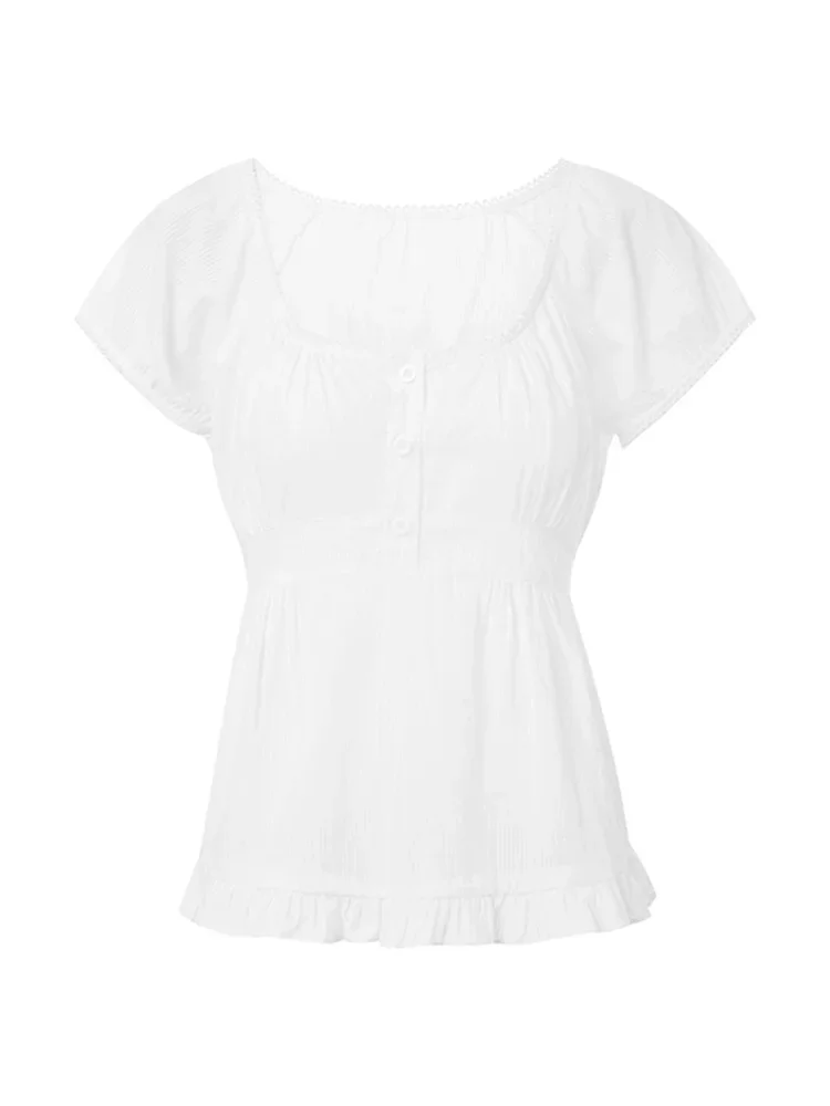Women’s Summer Short-sleeved T-shirt Solid Color Low-necked Pleated Hem Casual Tops