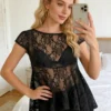 • Women's Flower Lace Blouse Short Sleeve Round Neck Shirts for Casual Daily Wear See-through Cover-ups Tops $39.52