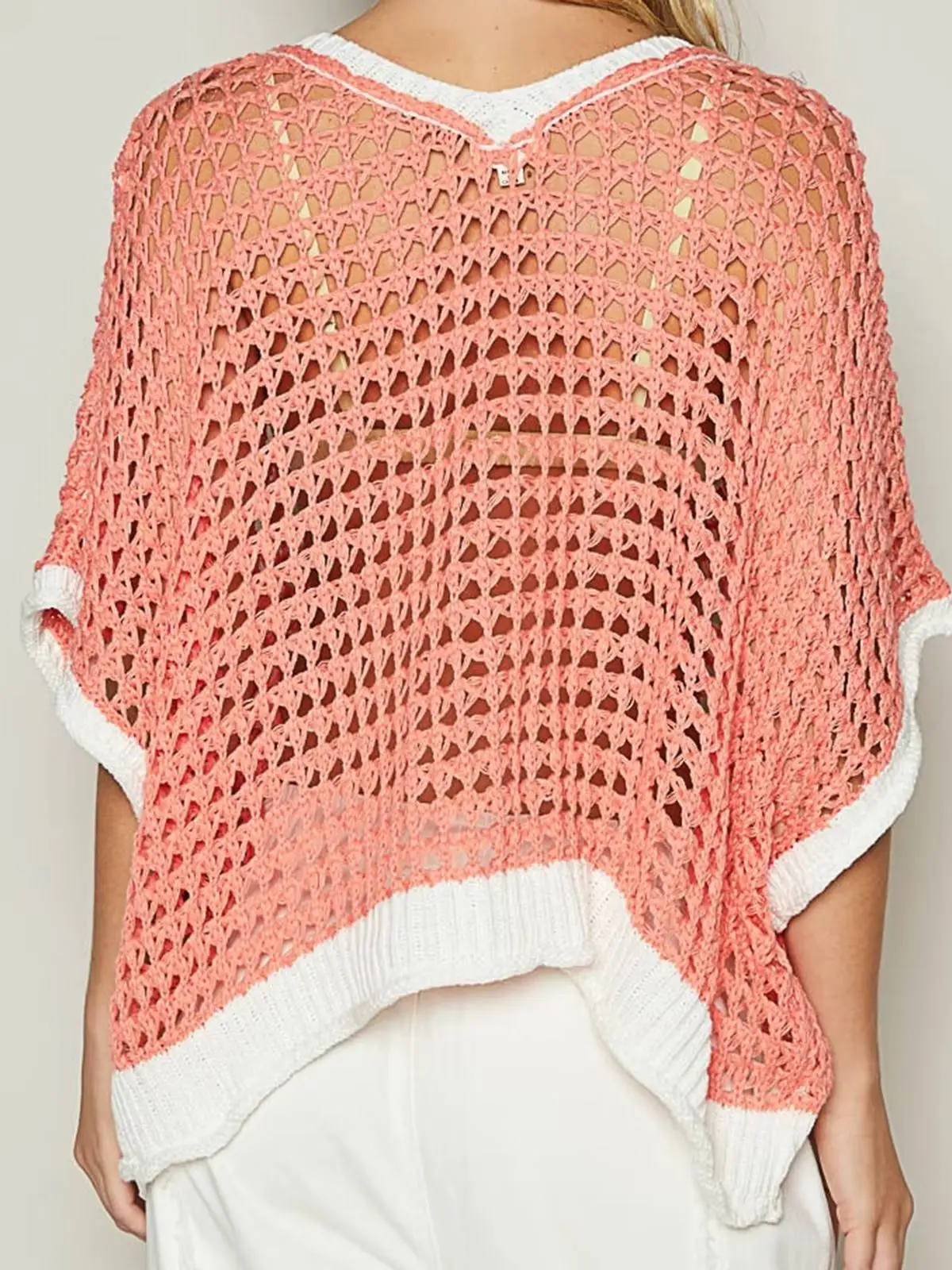 Women’s Crochet Hollow Out Tops Half Sleeve O Neck Daisy Embroidery Loose Shirts Cover-ups Summer Knitwear