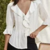 Womens Cross Wrap Tie Tops Long Sleeve Deep V Neck Solid Color Slim Fit T-Shirts Workout Blouses