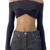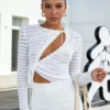 • Women Knit Shirts Long Sleeve Lace Trim Cut Out Tie-up Crop Tops and Blouses See Through Sexy Fashion Crop Top Spring Fall $39.52