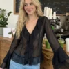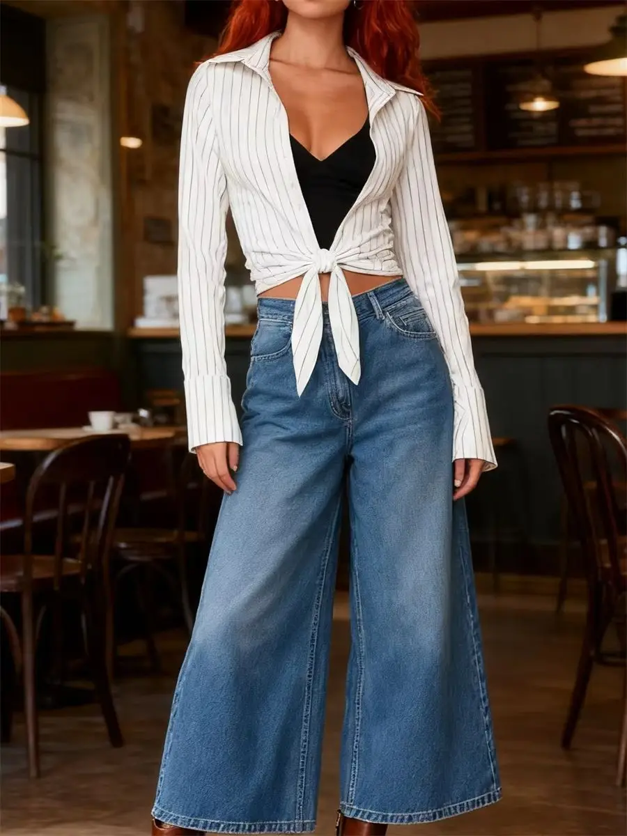 Womens Long Sleeve Tee Shirt White Vertical Stripe Polyester Shirt Womens Tee Shirts Womens Basic Tees Womens Going Out Tops Womens Casual T Shirt Women Long Sleeve Tops Women Stylish Deep V Neckline Shirt