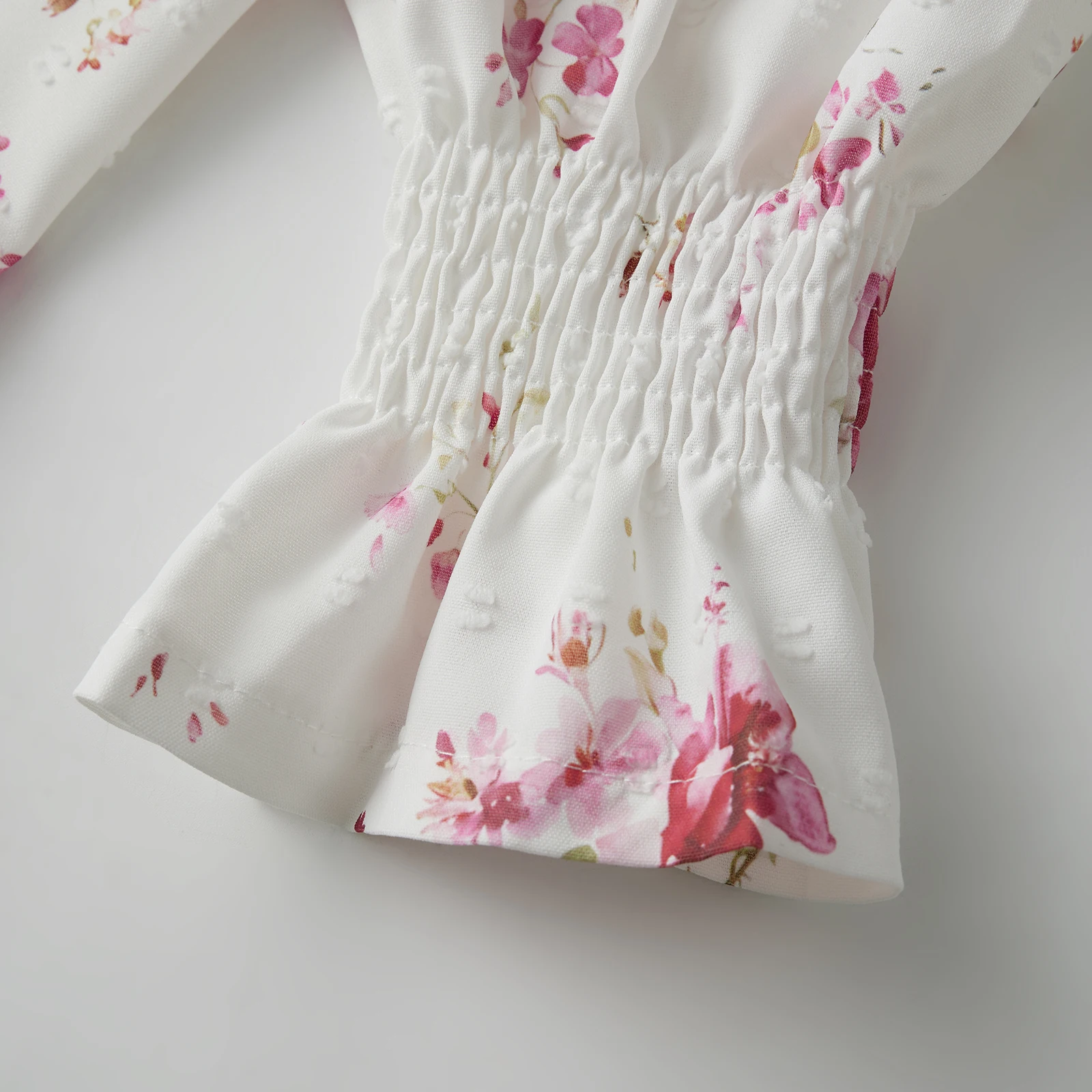 Women’s Ruffled V Neck Blouse Loose Fit Solid/Floral Print Button Down Elbow Sleeve Tops Summer Fall Elegant Shirts