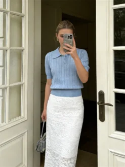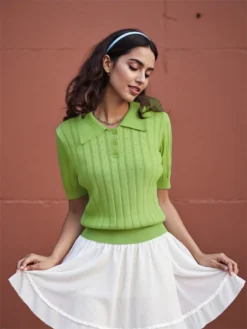 Be the first to review “Women’s Summer Knit Tops Short Sleeve Turn Down Collar Solid Color Cutout Shirts” Cancel reply