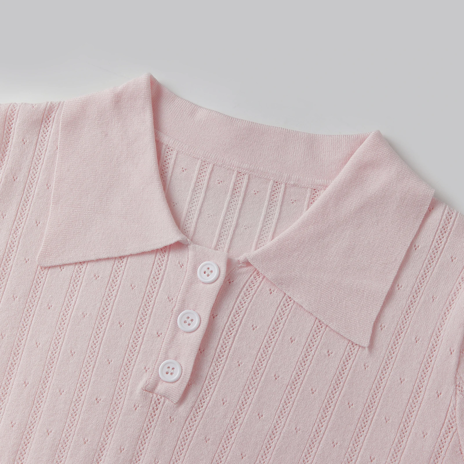 Women’s Summer Knit Tops Short Sleeve Turn Down Collar Solid Color Cutout Shirts